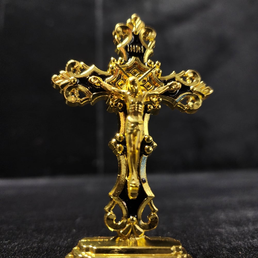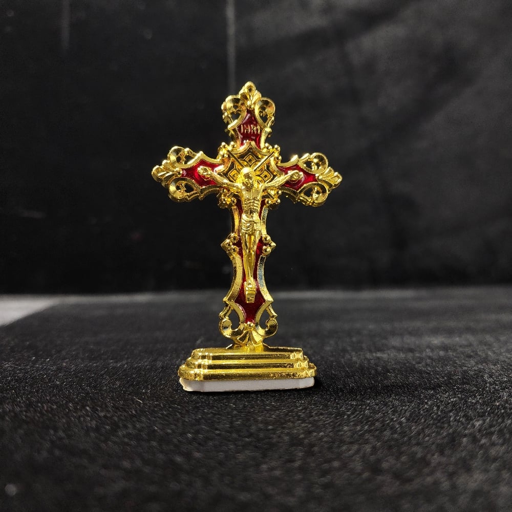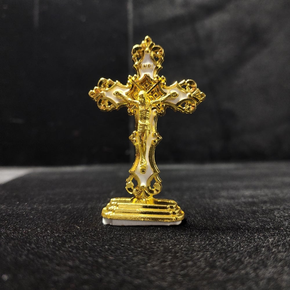 Gold plated over nickel crosses with Jesus are great for an alter at home or office. Ideal for your car dashboard. Double sided sticky on each one.