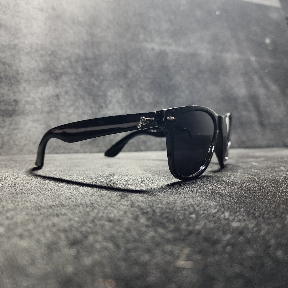 Wafer style sunnys. Ride a cowboy save a horse. Adorned silver guns on either side.