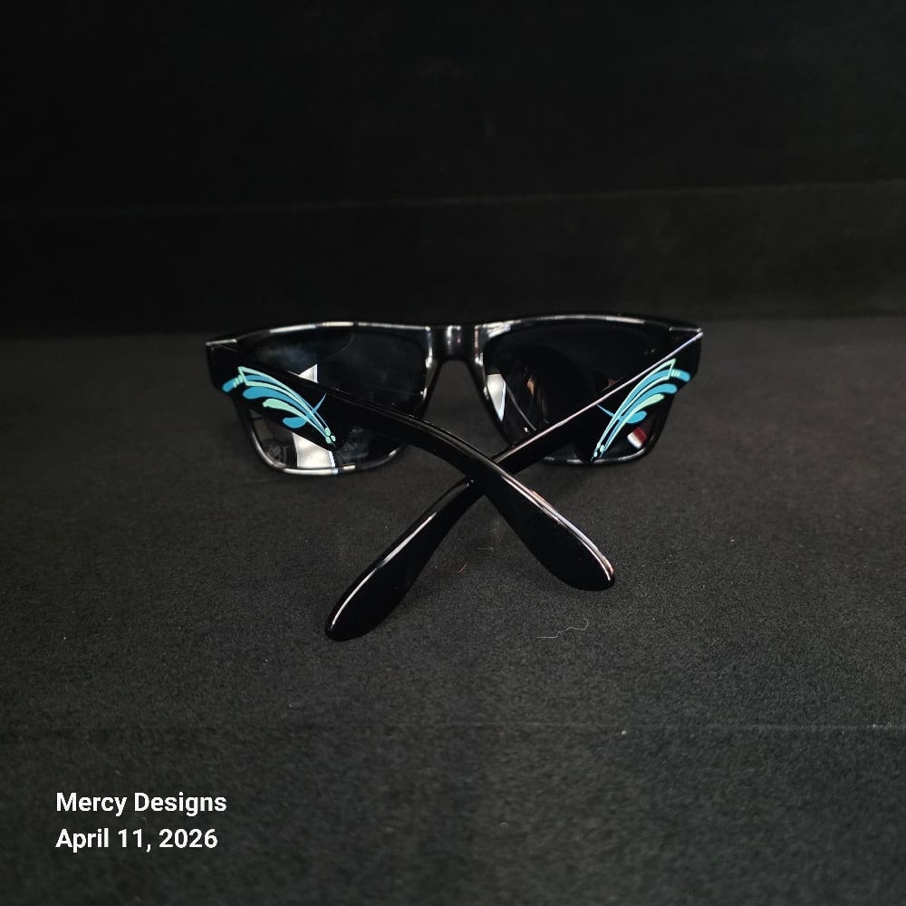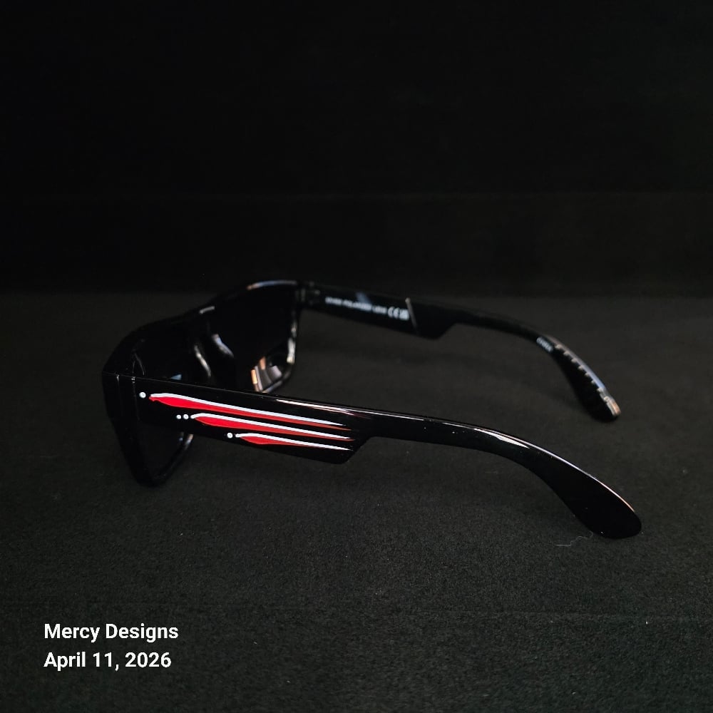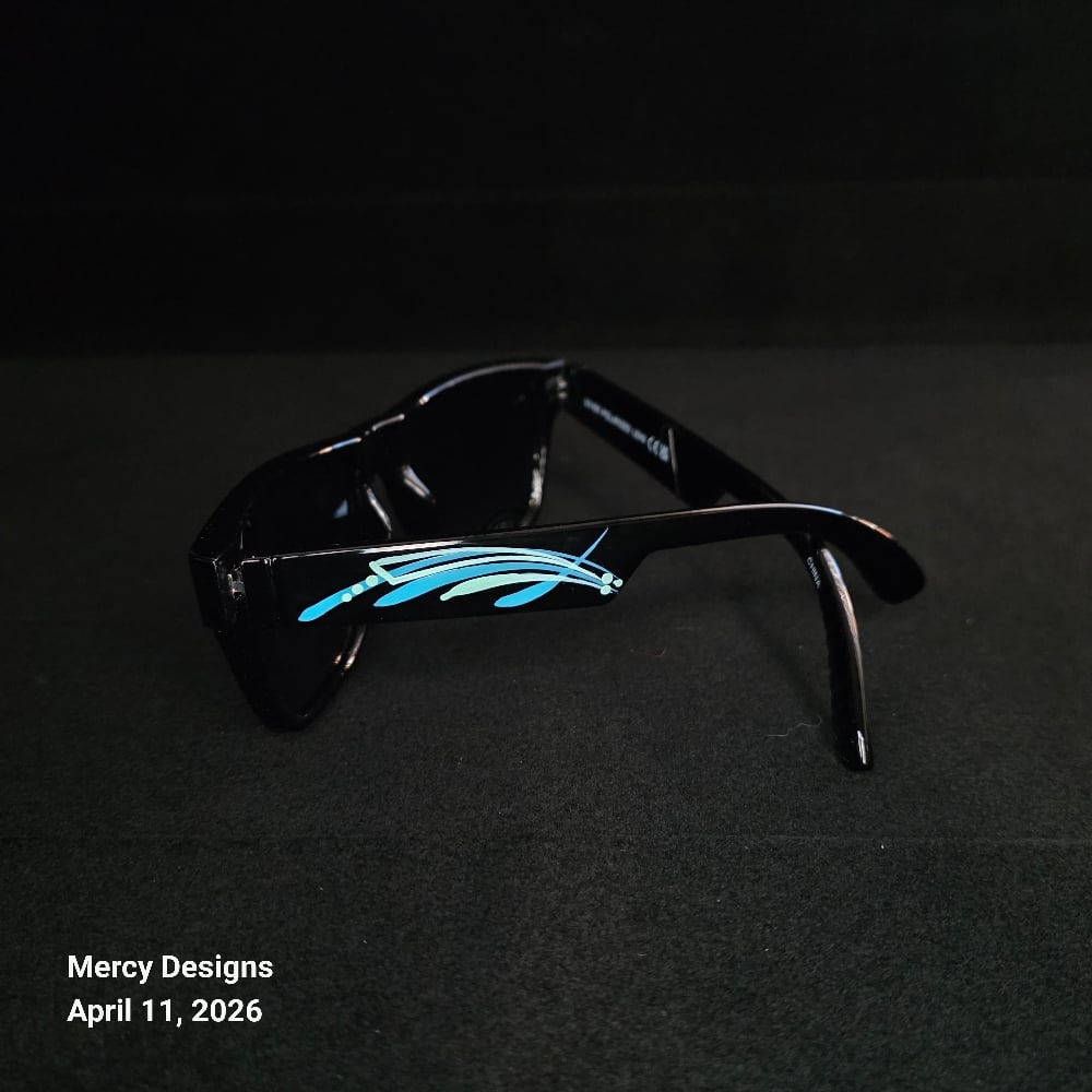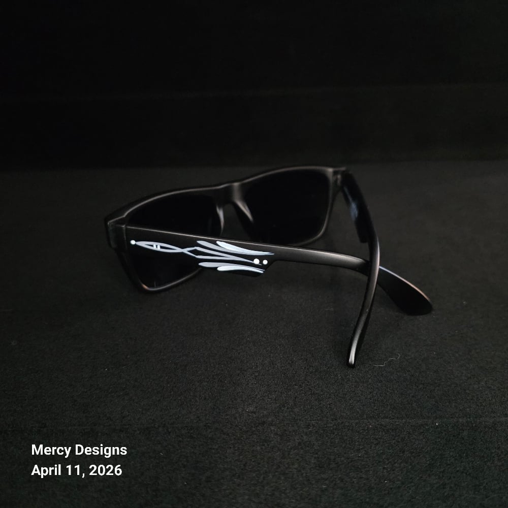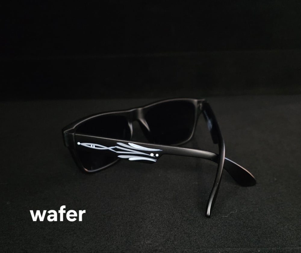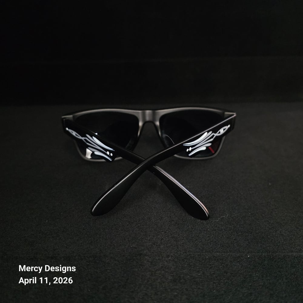 Complete Your Look with these cool kustom pinstriped Wayfare sunglasses. Shiny black finish