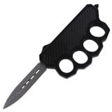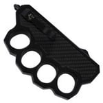 The trench-style knuckle handle adds a layer of protection and grip, making it ideal for high-stress situations. The handle is made from zinc aluminum and boasts carbon fiber inlays for a sleek look. It also comes equipped with a pocket clip and glass breaker for additional emergency features.
