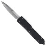 The Thunder Bolt Single Edged OTF Knife features a mirror polish, spear point style, 3.25 inch blade with a super sharp plain edge. It has a superior High Quality Steel Blade with a partial satin finish giving it an eye catching piece. The handle is zinc alloy with a Cerakote coating that gives the handle its smooth finish. The metal Firing Button is on the Upper Spine of the Handle with a safety delayed spring tension mechanism to stop it from any accidental Firing. The handle has been held together by six torc screw making this knife a very durable collection to carry. The Thunder Bolt Single Edged Dual Action OTF knife has a removable pocket clip with a glass breaker. The glass breaker can also be used as a self-defense weapon in a case of emergency. This knife comes equipped with a nylon pouch which offers a velcro belt loop and securing clips. Overall Length: 8.25 Inches, Blade Length: 3.25 Inches